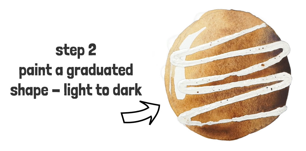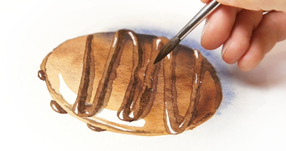 Now we can fill in the shapes of the icing. I’m using a mid-strength mixture of brown paint for this.