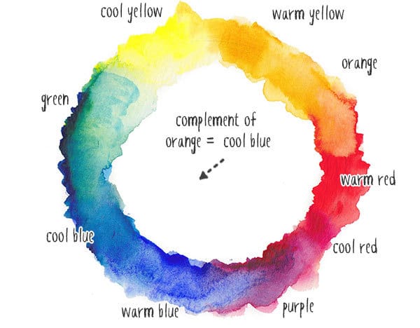 Take another look at the color wheel. A complementary color is any color which is on the opposite side of the color wheel. In our particular case, the complement of orange is a cool blue.