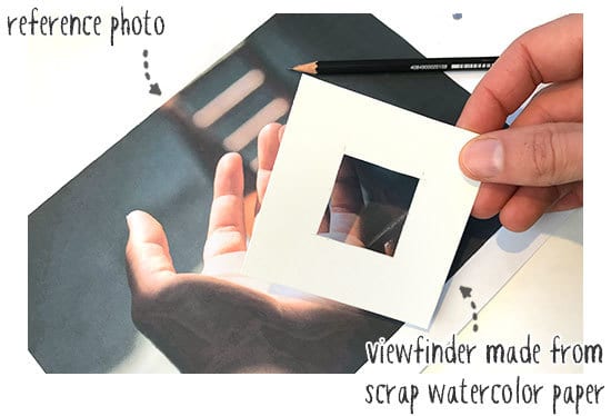 You can make viewfinders quite easily from a piece of old watercolor paper with a hole cut into it. Alternatively, I really like this composition finder which also includes a handy grayscale value chart (check the reviews on Amazon).