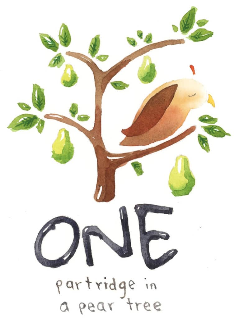 These 12 days of Christmas watercolors are all painted in an illustrative style. So you don’t have to worry about realism. Still, the painting approach is intended to give them some depth and graphic interest.