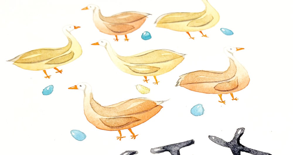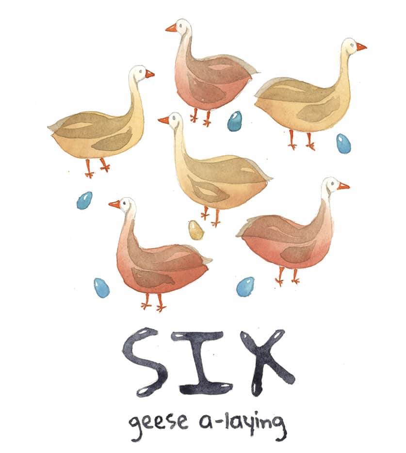 Watercolor Painting of Six Geese A-Laying (Step by Step)