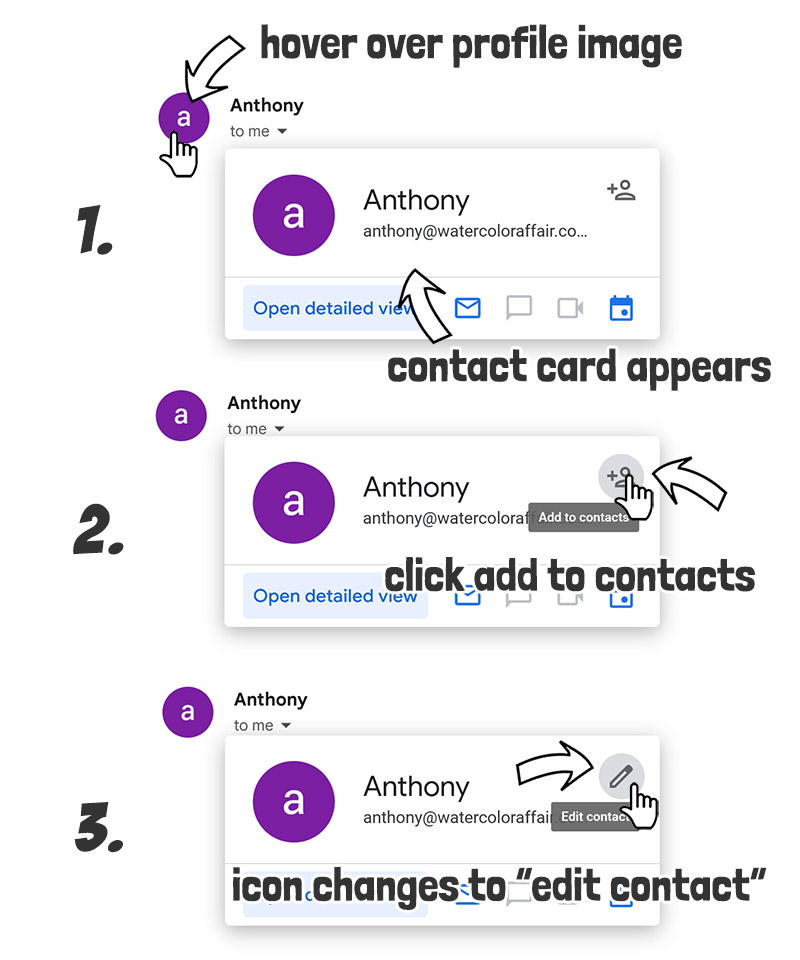 - Click on the âadd to contactsâ icon in the upper right of the contact card.