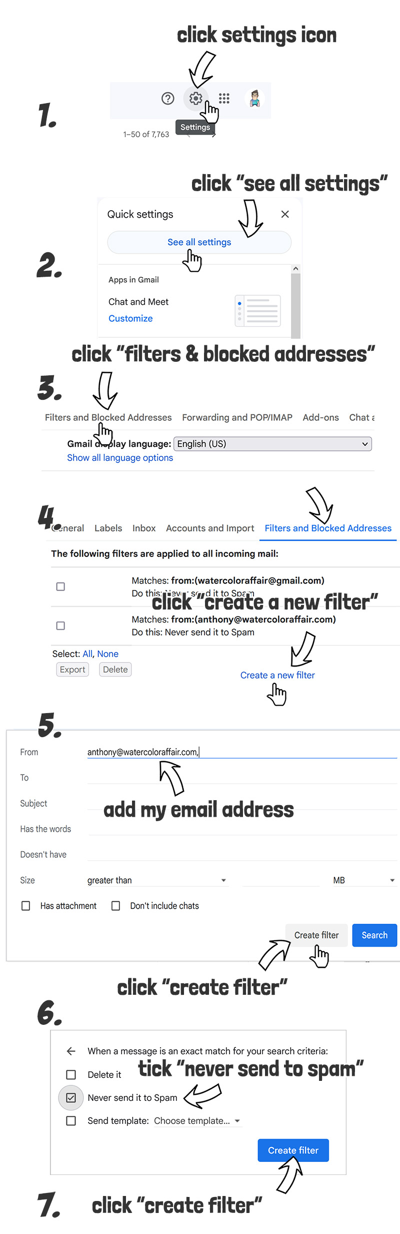 If youâre not getting my recipes the best option is to create a filter to add my email address to your approved list.