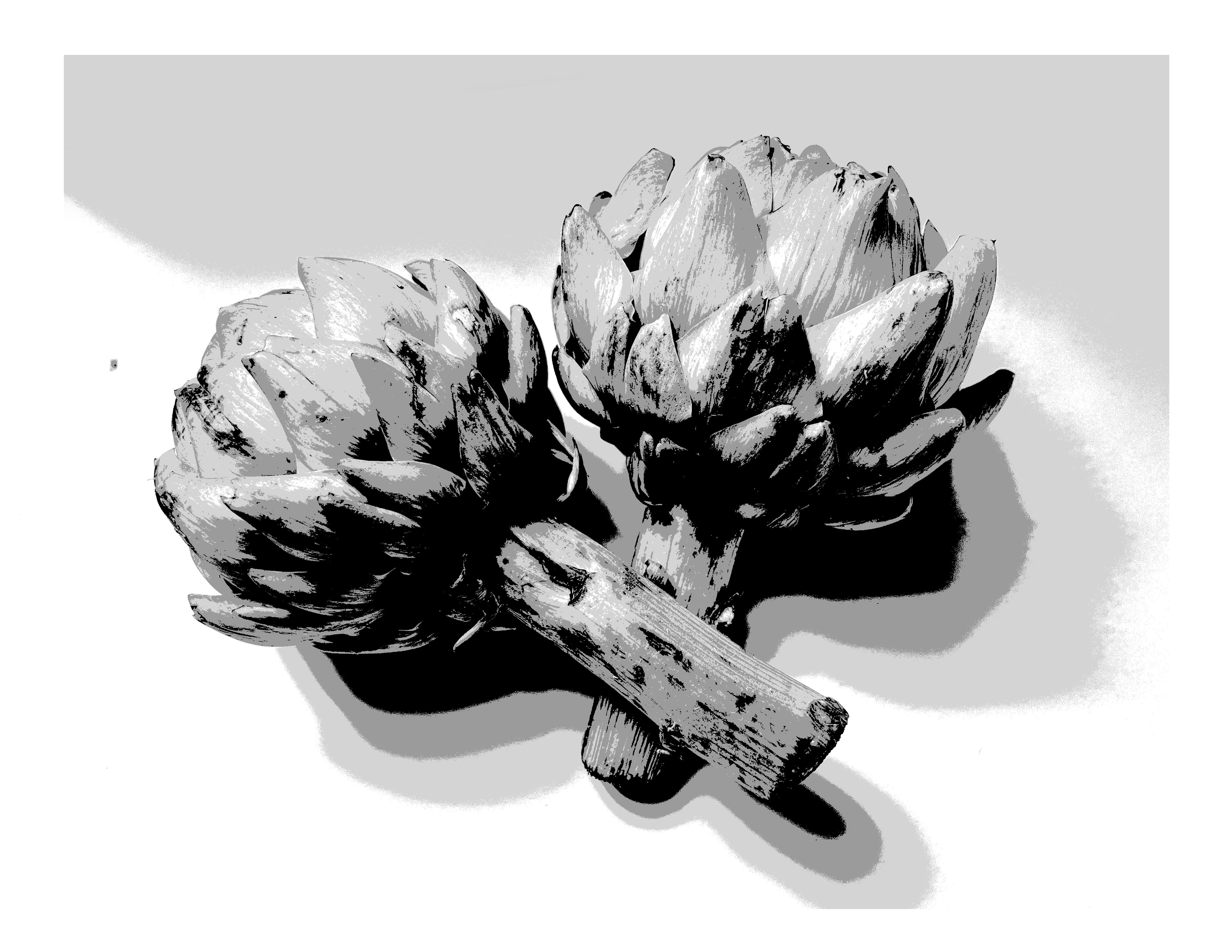 By this stage, the artichokes are starting to look more three-dimensional. This illusion of depth has been built up gradually, layer by layer, working from light to dark.