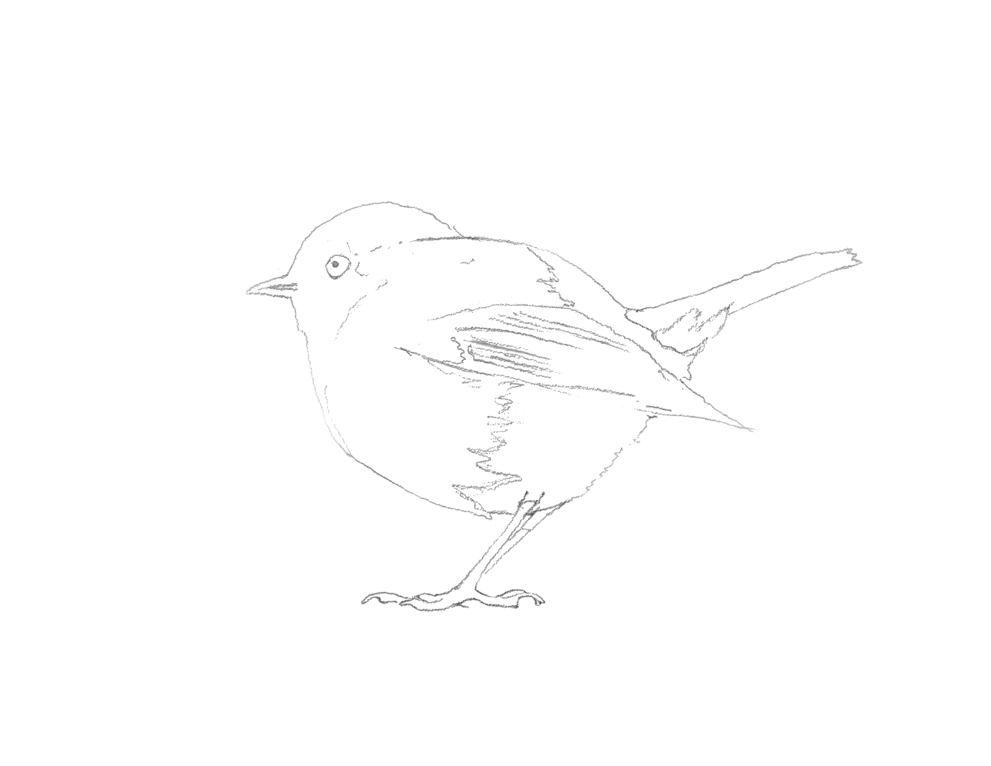 With only a small amount of paint on the brush, I gently touched the paper using light brush strokes. This technique creates a textured, broken pattern that mimics the soft appearance of feathers. And by varying the direction of the brush marks, this effect suggests the fluffiness of the robin’s feathers.