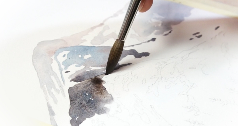 Watching how the wet paper interacts with different water-to-paint ratios helps you understand how to control the flow of watercolors.