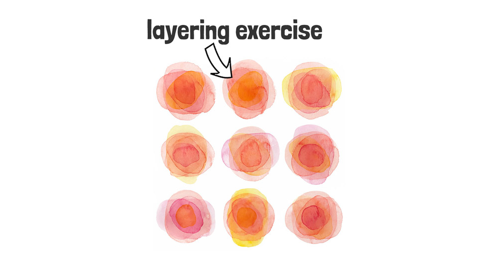 You could try simple exercises like layering shapes (using a glazing technique) to explore how the transparency of watercolors works, and how layering affects the final appearance.