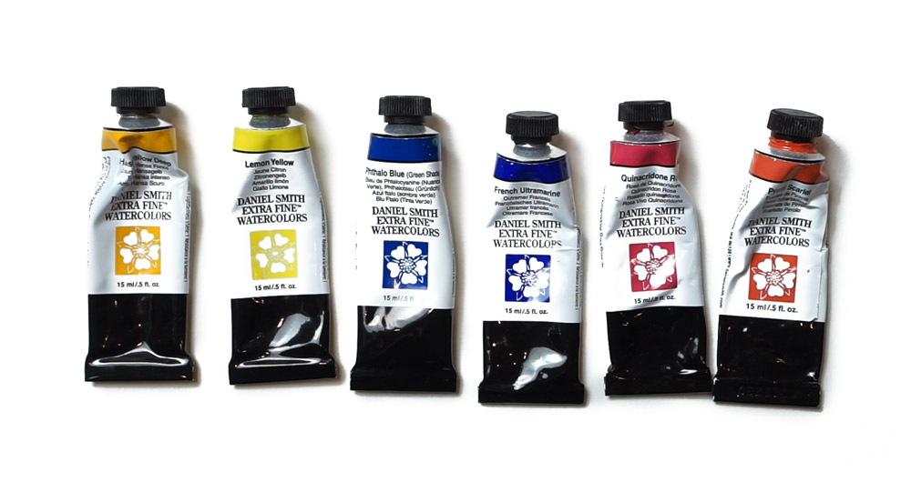 You have taught me so much in the courses I’ve followed so far, particularly about the different qualities and handling of paints. I have taken your advice on Daniel Smith and my little set of six warm/cool colours arrived yesterday. They are so pure, bright and clean to work with and a little goes a very long way! Wishing you all the best!