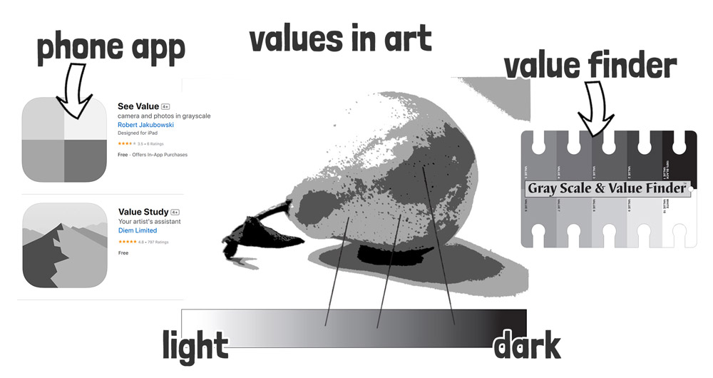 To make this easier, try using a simple value finder or a phone app to convert photos into value studies.