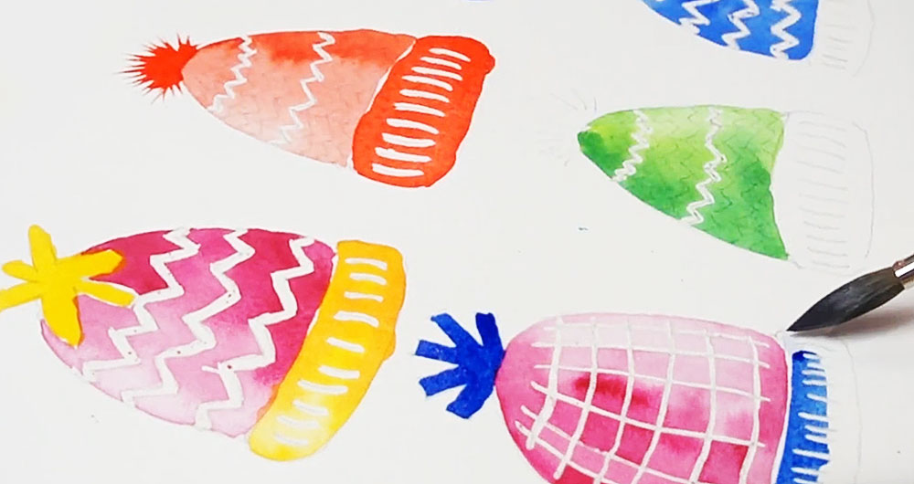 In this lesson I’m going to show you how to paint these colorful winter wooly hats in watercolor!